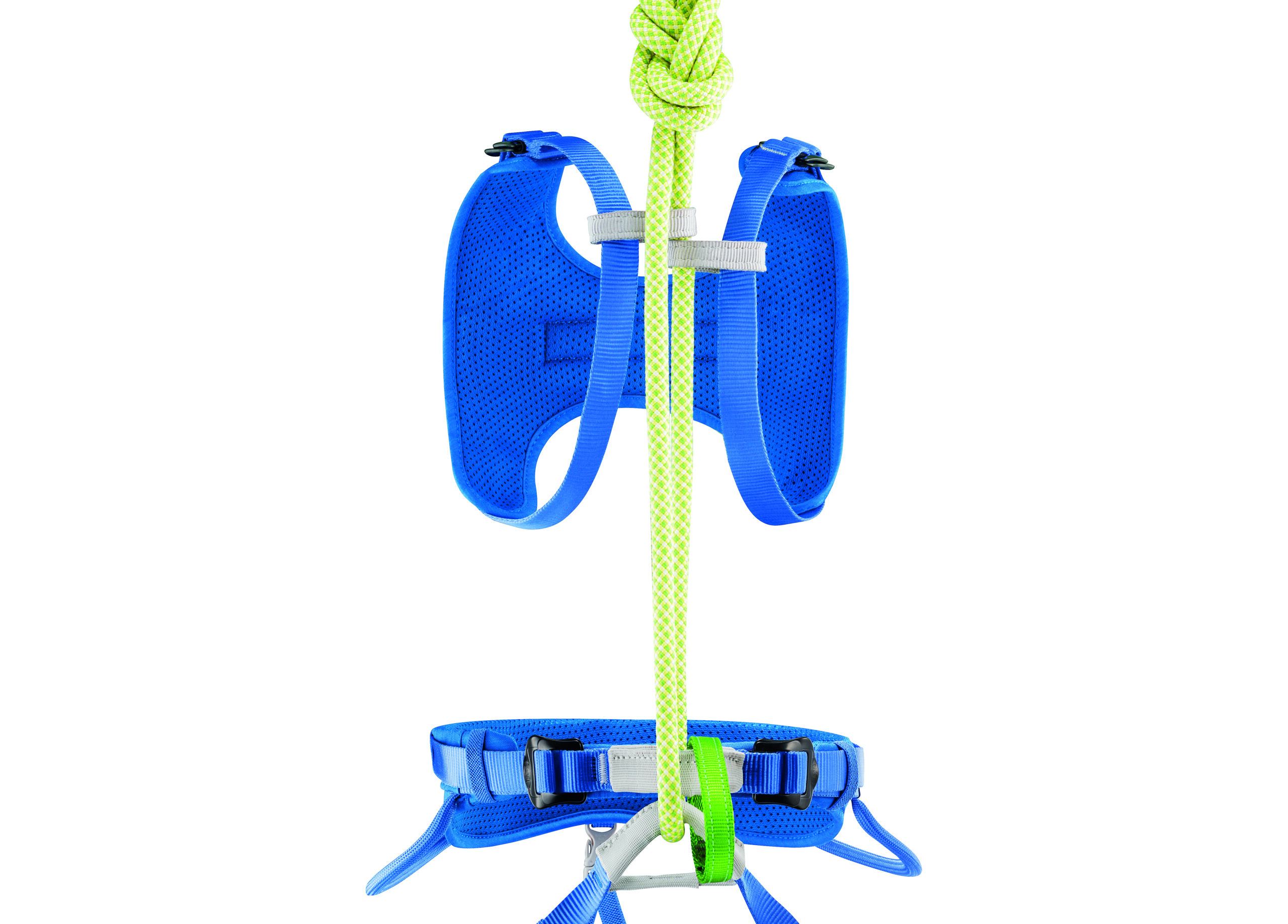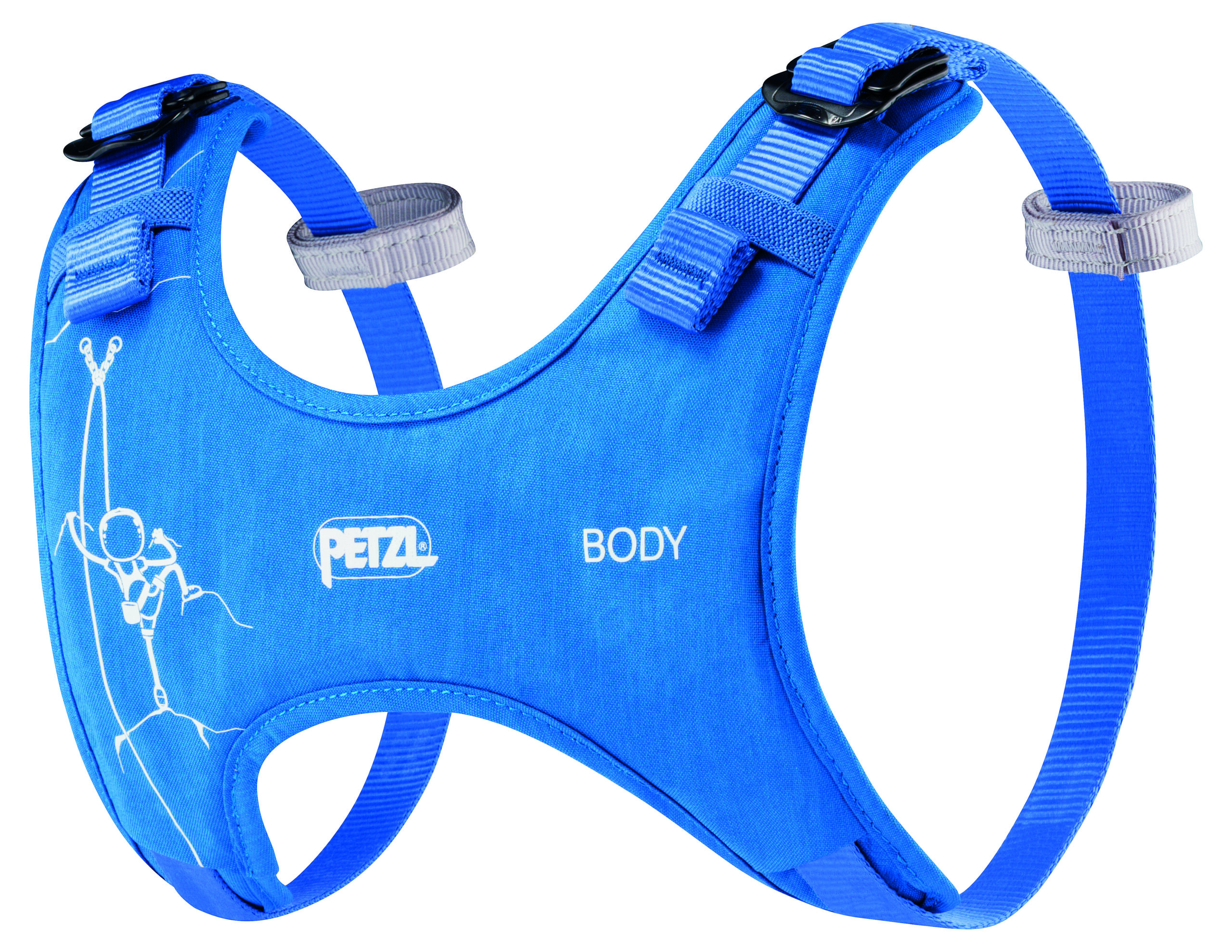 Der BODY-Schulterträger ist zur Verwendung in Kombination mit einem Sitzgurt (MACCHU) konzipiert. Durch das Anseilen auf der Höhe des Oberkörpers wird das Gleichgewicht des Kindes beim Hängen verbessert. Er ist optimal auf den Kinderkörper abgestimmt, lässt sich leicht einstellen und ist bequem.