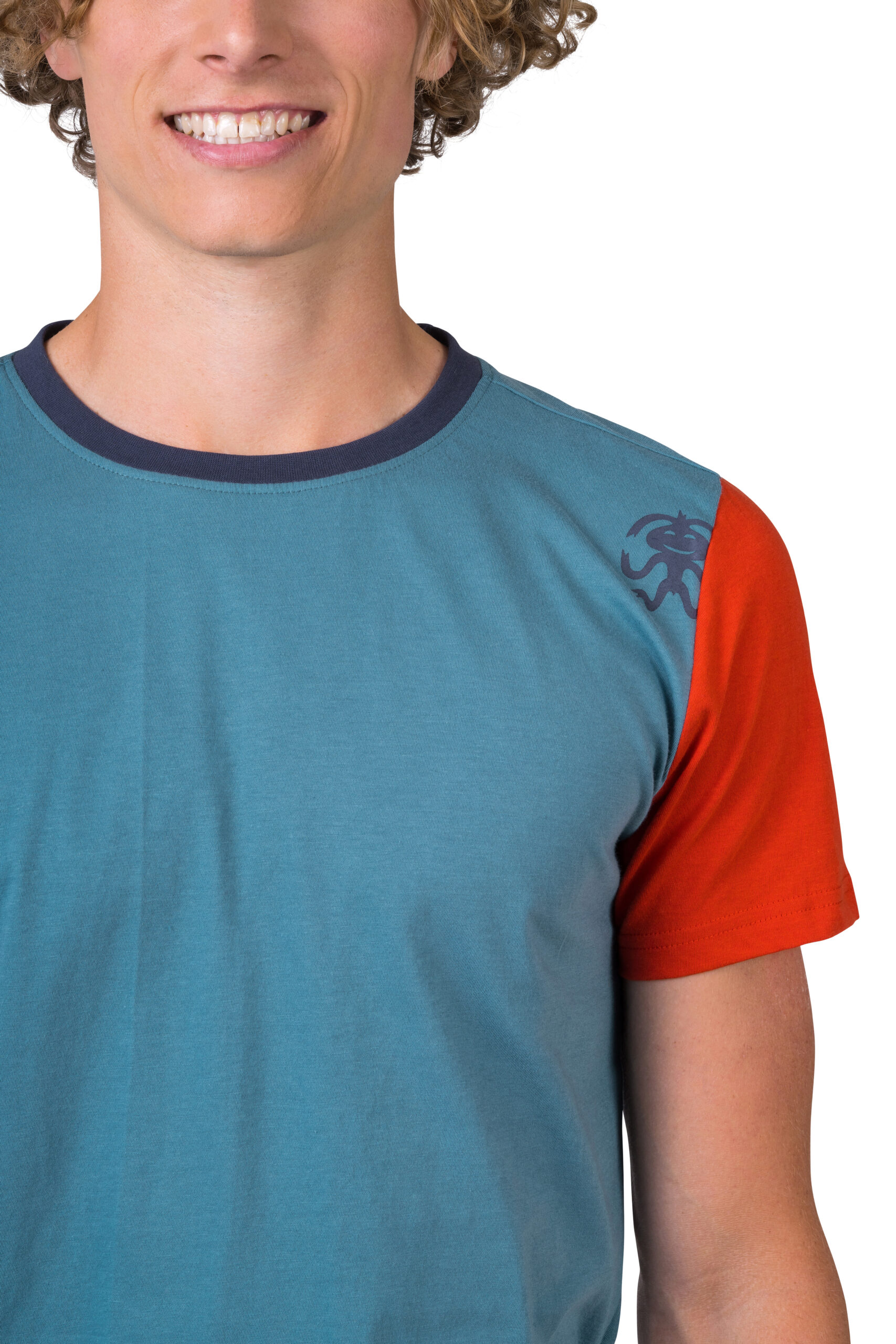 Herren-T-Shirt aus Bio-Baumwolle mit farbigen Ärmeln zum Kletternund für die Freizeit