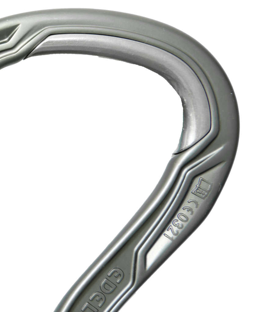 Innovativer und robuster HMS-Karabiner mit Stahleinsatz im Scheitelpunkt des Karabiners. Verhindert vorzeitigen Verschleiß und Scharfkantenbildung. Auch als leichte Alternative zu Stahlkarabinern beim Topropen zu verwenden.