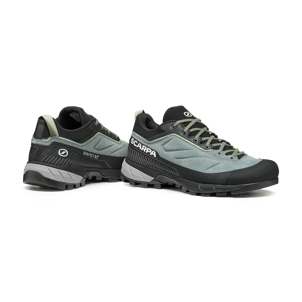 RAPID XT WOMAN ist der bequeme Lederschuh für Approach, Trail und leichte Wanderungen mit einem klaren Design. Jedes Detail ist durchdacht, um Grip, Komfort und Schutz zu gewährleisten, wie z.B. der umlaufende TPU-Rand, der abriebfest ist. Die Vibram® MegaGrip Sohle mit Kletterzonen im Zehenbereich und dem Brake System im hinteren Bereich sorgt für Stabilität und Halt. Die innovative Form, breit und ergonomisch an der Zehe, ist so konzipiert, die Konformation des Fußes zu folgen.