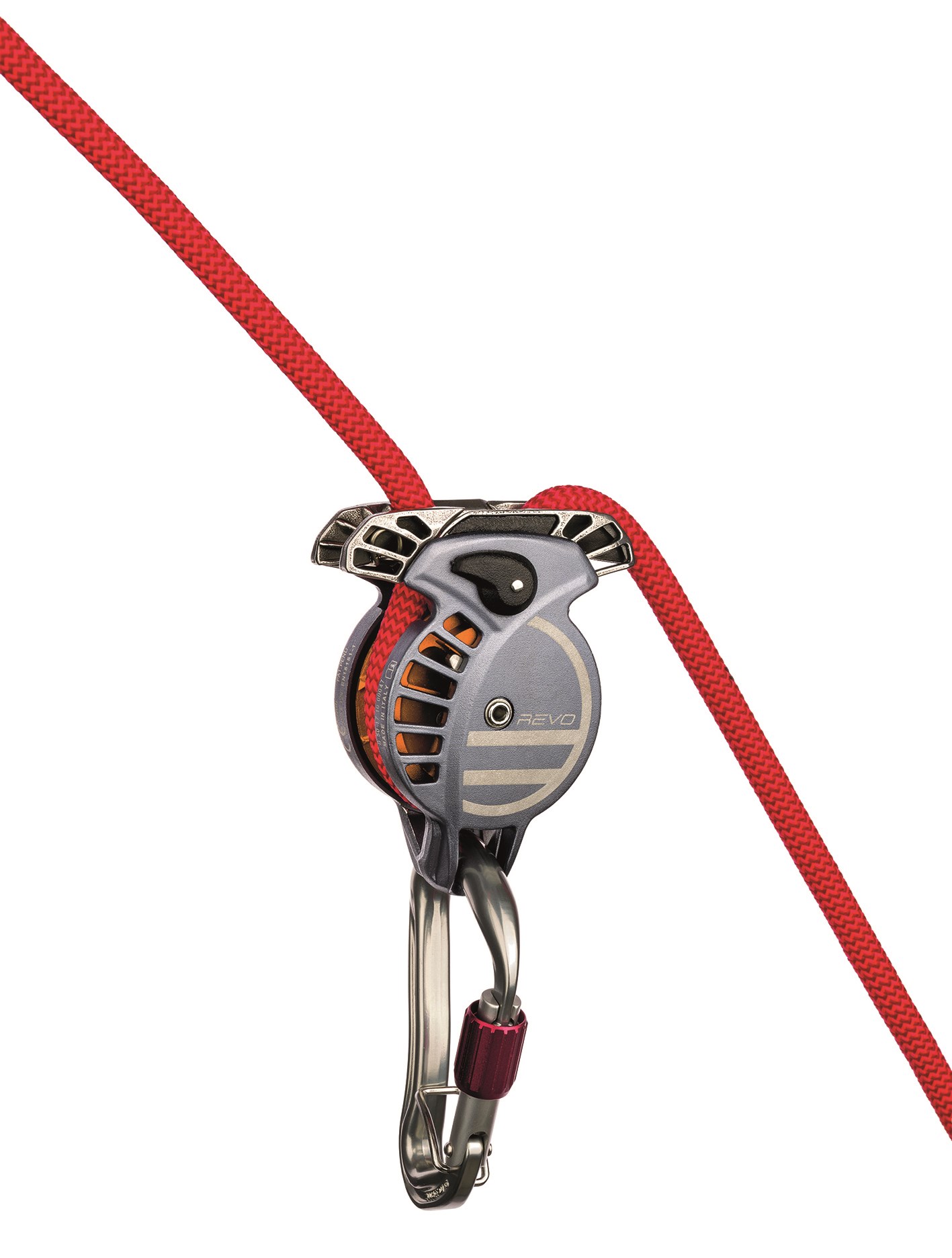 Das REVO ist das erste bidirektionale, unterstützte Sicherungsgerät. Es funktioniert unabhängig von der Belastungsausrichtung des Seils und behebt somit eine der häufigsten Ursachen von Unfällen beim Sichern.