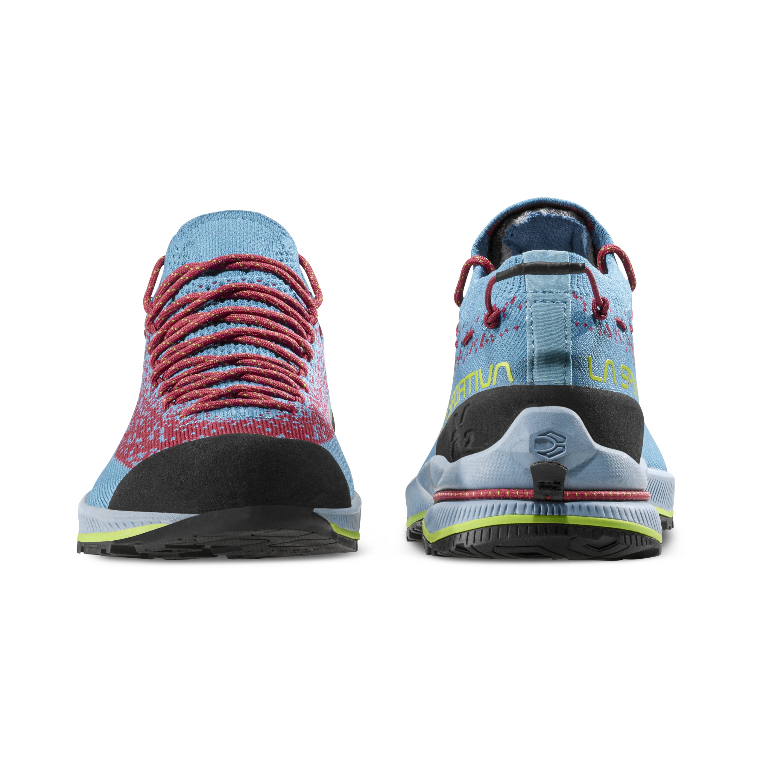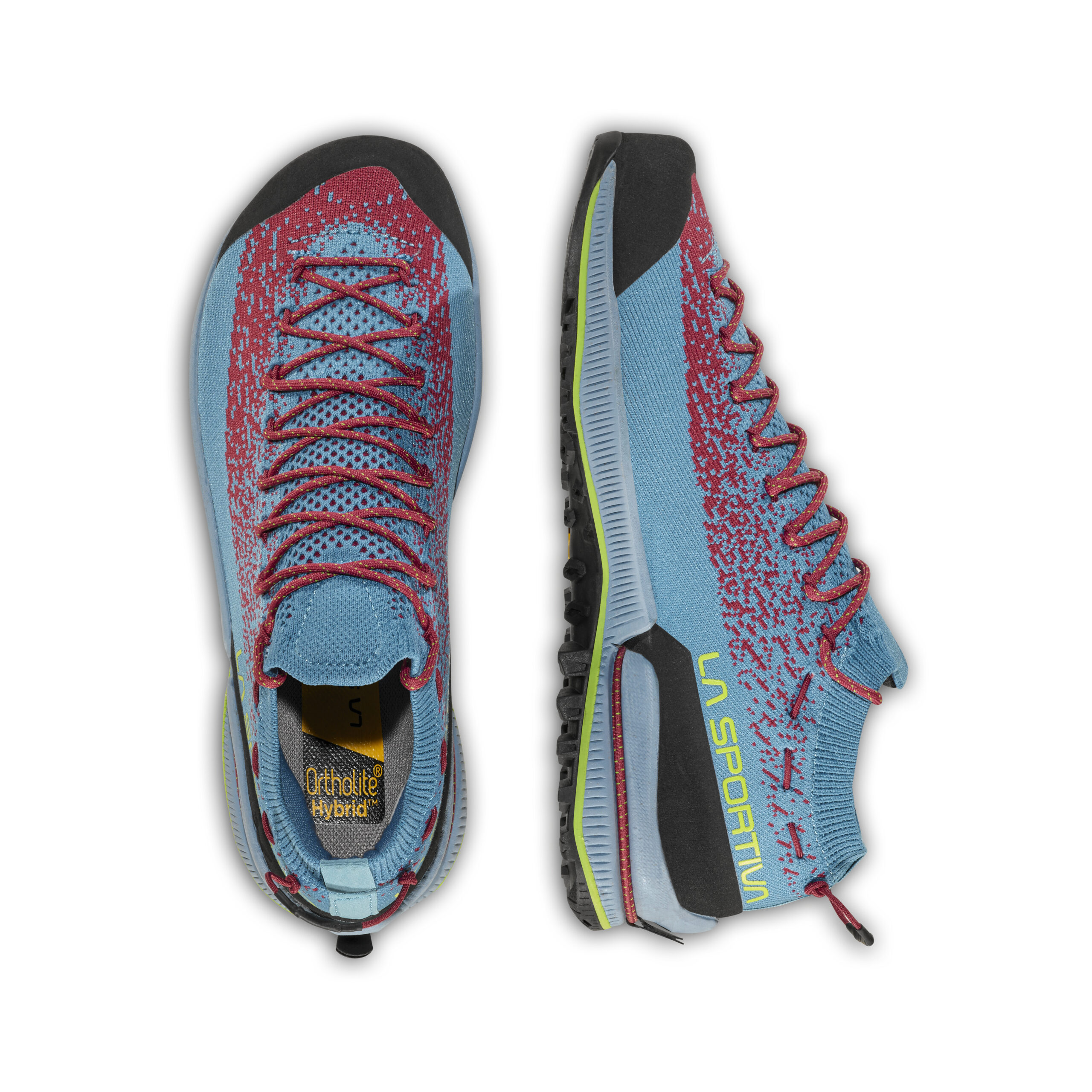 TX2 EVO Woman ist die Damenversion des leichtesten Schuhs der Traverse X Approach-Serie: erfüllt die Anforderungen an Grip, Schutz, minimales Volumen und Leichtigkeit, die in technischen Zustiegen und bei Mehrseillängenrouten erforderlich sind. Der Schuh verfügt über eine Sohlen-Einheit mit 100% neubesohlbarer Außensohle, die seinen Lebenszyklus verdoppelt, und er besteht aus recycelten Materialien, um die Umwelt zu schonen. Die Sohlen-Einheit würde konzipiert, um eine einfache und schnelle Neubesohlung zu ermöglichen. Die Außensohle kann ausschließlich durch autorisierte La-Sportiva-Fachhändler ersetzt werden. Das Obermaterial ist nahtlos und dank der integrierten Zunge, die Leerräume beseitigt und den Fuß umschließt, sehr umhüllend, für maximalen Komfort und Schutz. Das für das Obermaterial, die Schnürsenkel, das Ortholite® Hybrid Approach-Fußbett und einen Teil des EVA der Zwischensohle eingesetzte Gewebe wurde aus umweltfreundlichen, vegan-friendly Materialien hergestellt. Vibram® IdroGrip-Sohle mit „Climbing zone“, für maximalen Grip auf technischem Boden entwickelt. TX2 Evo: renew, reuse, resole.
